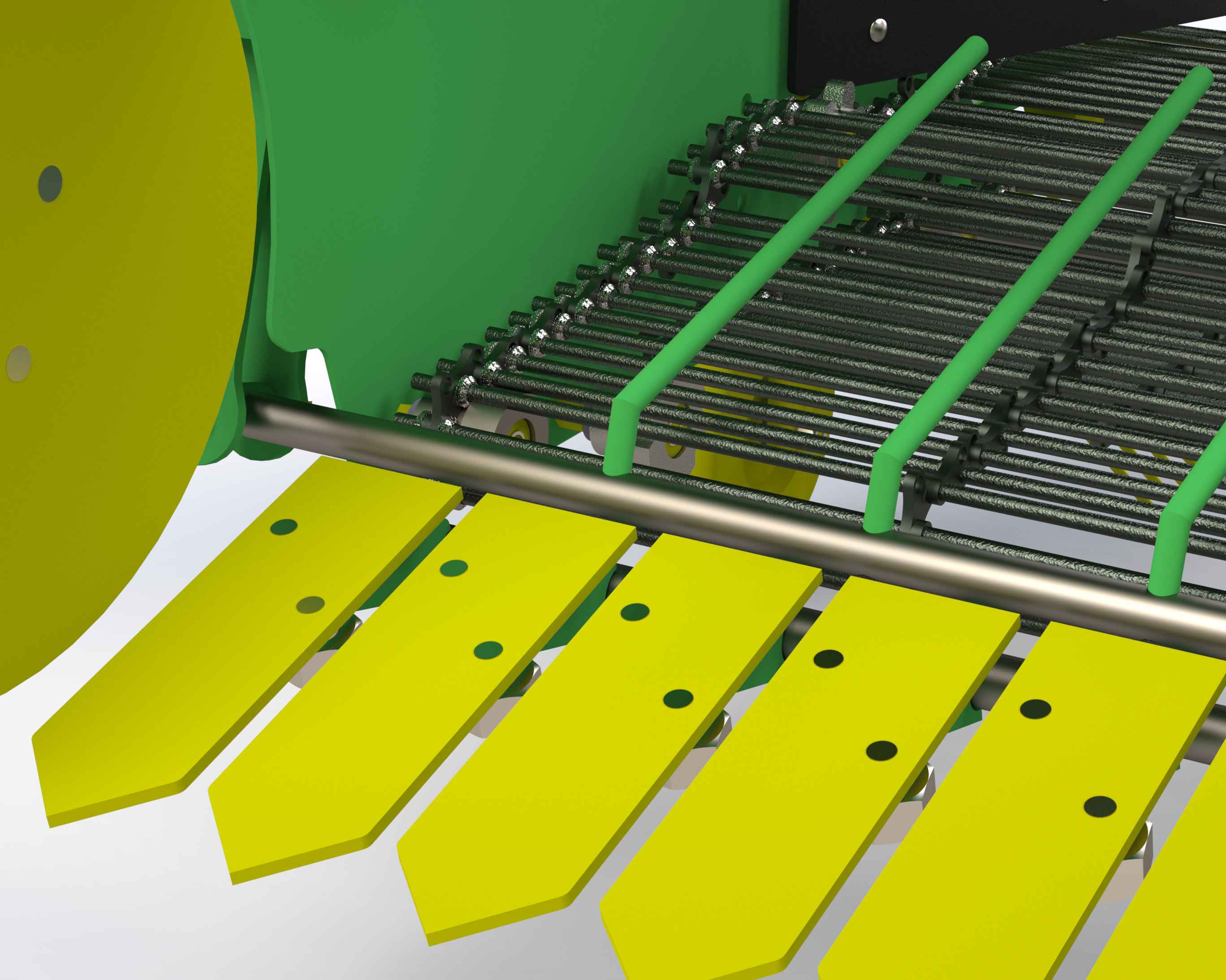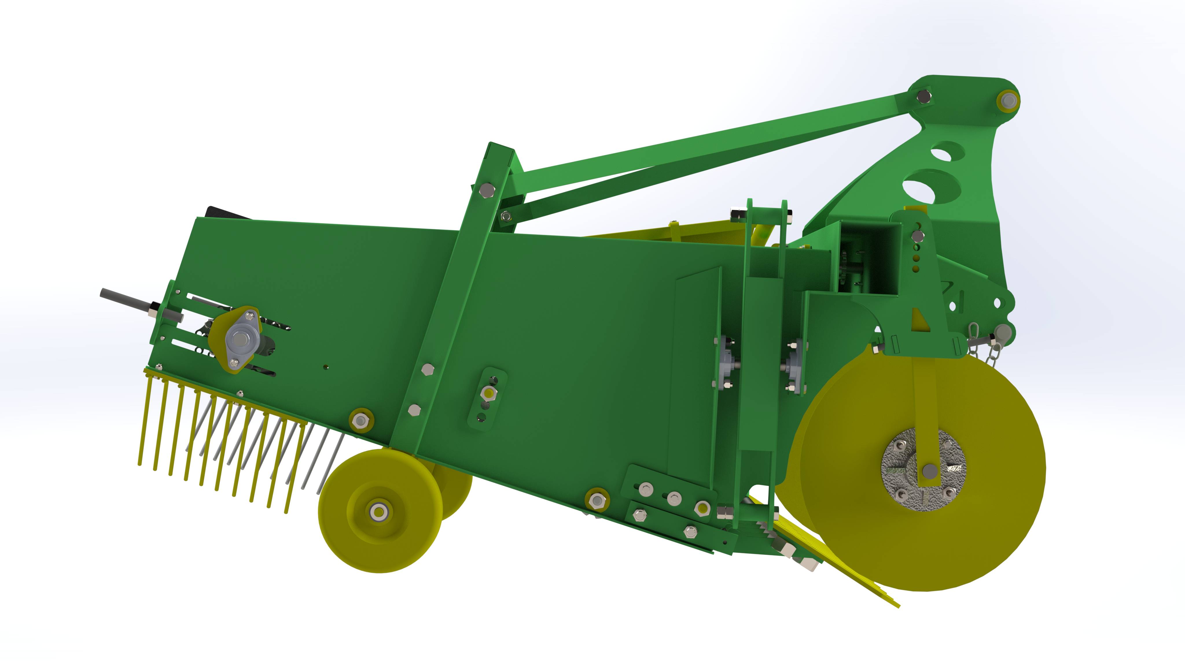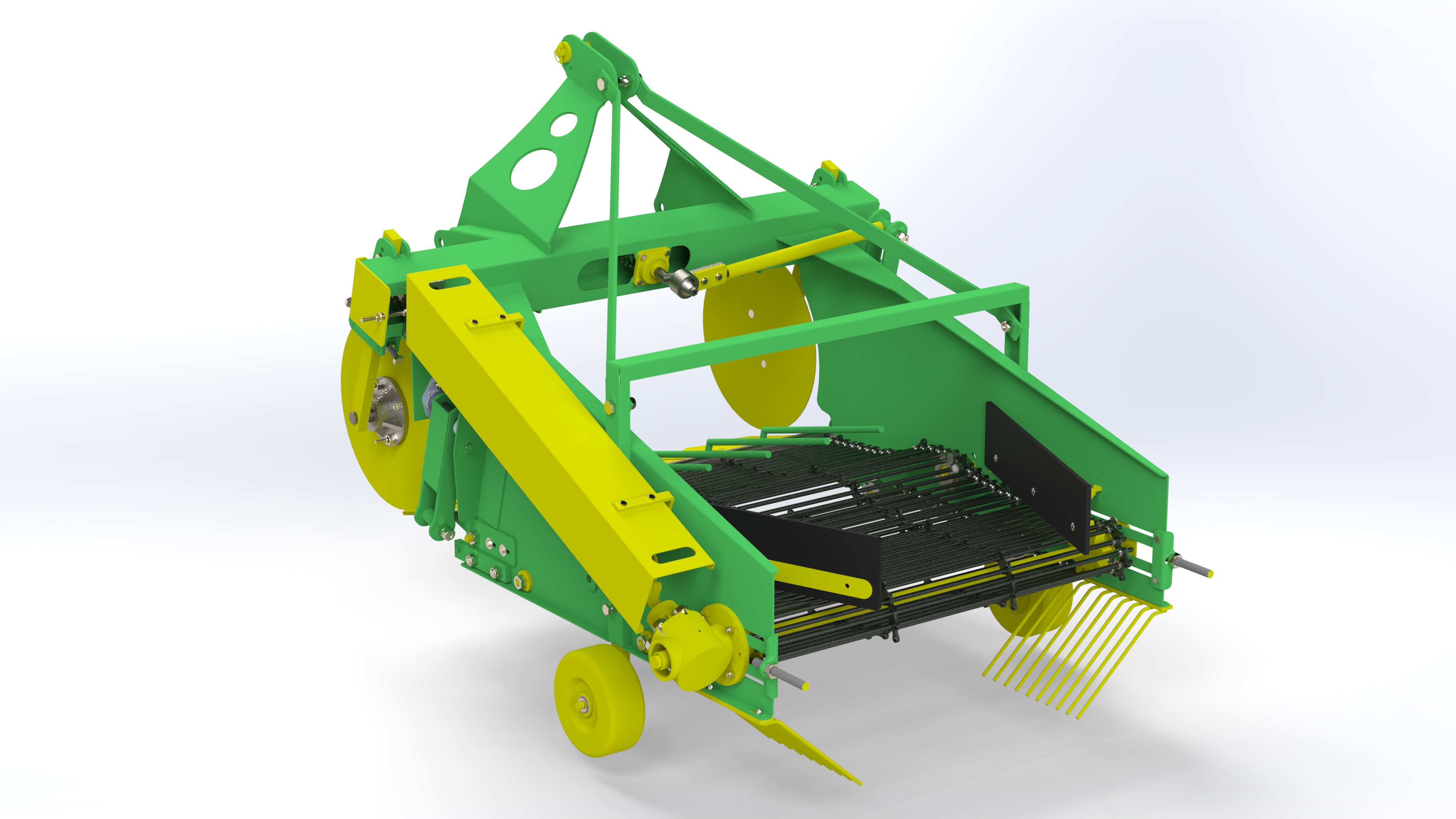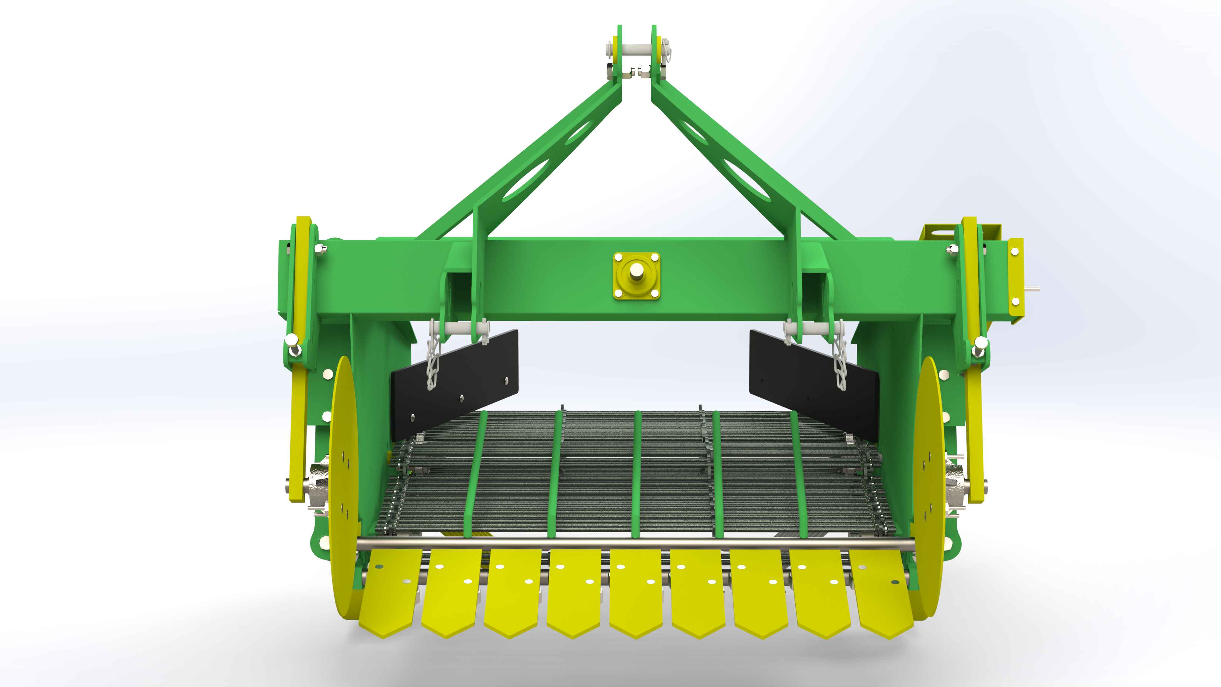 The machine is mounted to the tractor via a 3-point hitch system and receives its power from the tractor’s PTO shaft. Thanks to the digging blades positioned in front of the potatoes, the crop is lifted together with the soil and transferred onto the elevator, where soil is separated from the potatoes. Cleaned potatoes are then discharged onto the soil surface in rows from the rear of the machine. The potatoes are conveyed gently without being squeezed between discs, preventing crop damage. With its reinforced shaft and gearbox system, this machine is more powerful than many similar models on the market. Backed by over 30 years of experience, this classic model offers proven quality, durability, and reliability to meet your harvesting expectations with confidence.