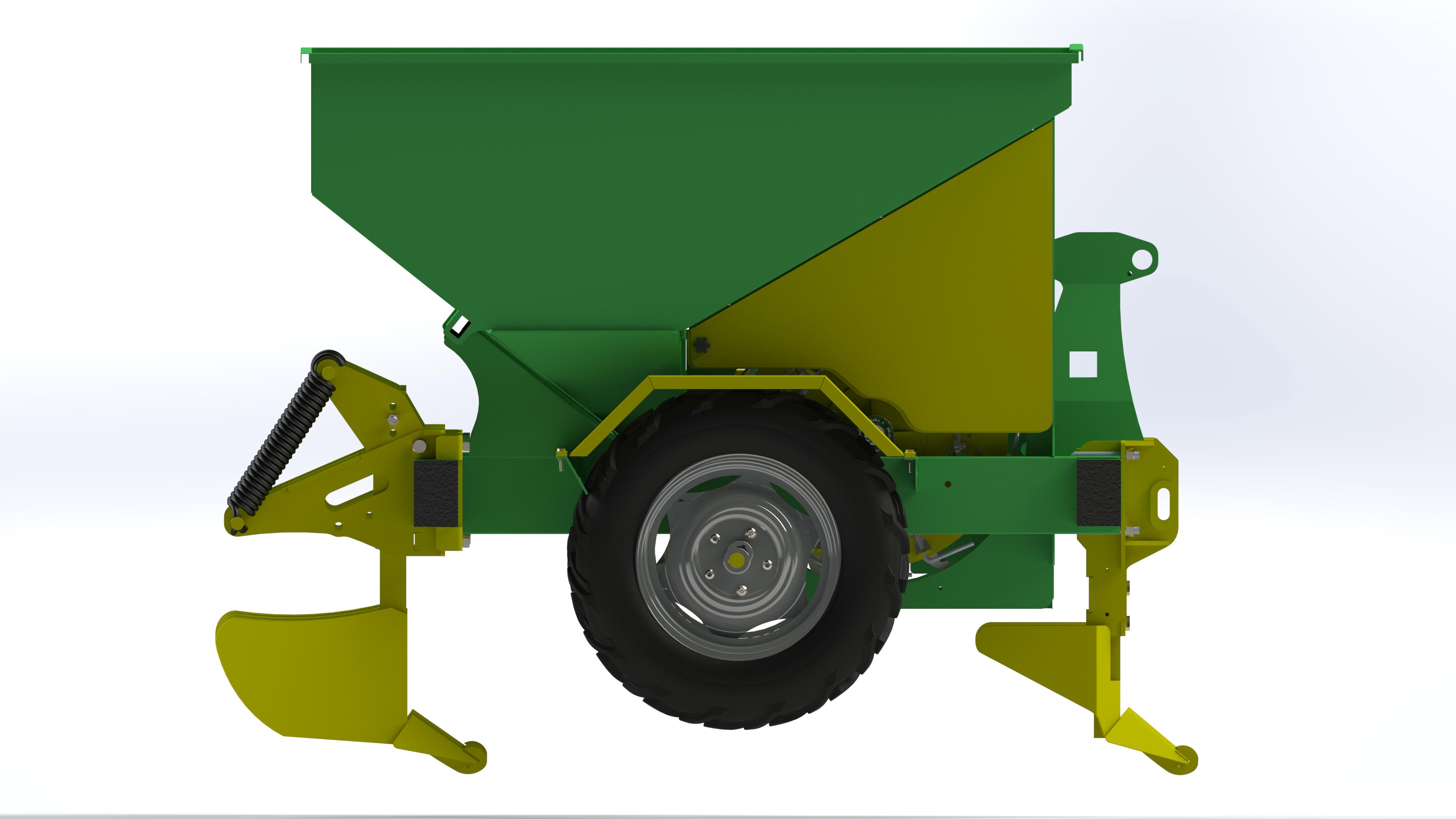 Discover our new potato planting machine, which is connected to the tractor via a 3-point hitch system and adjusts planting distance through the wheel mechanism. With adjustable row spacing of 65–75 cm, this machine allows you to plant all types of potato seeds, provided they are properly graded. It features specially designed, easily replaceable components for graded potatoes. Operating without the need for manual labor, it significantly reduces labor costs. Its daily planting capacity has been increased to 45–60 decares, nearly double that of standard machines. This is a unique machine produced in Turkey with no equivalent competitor.
