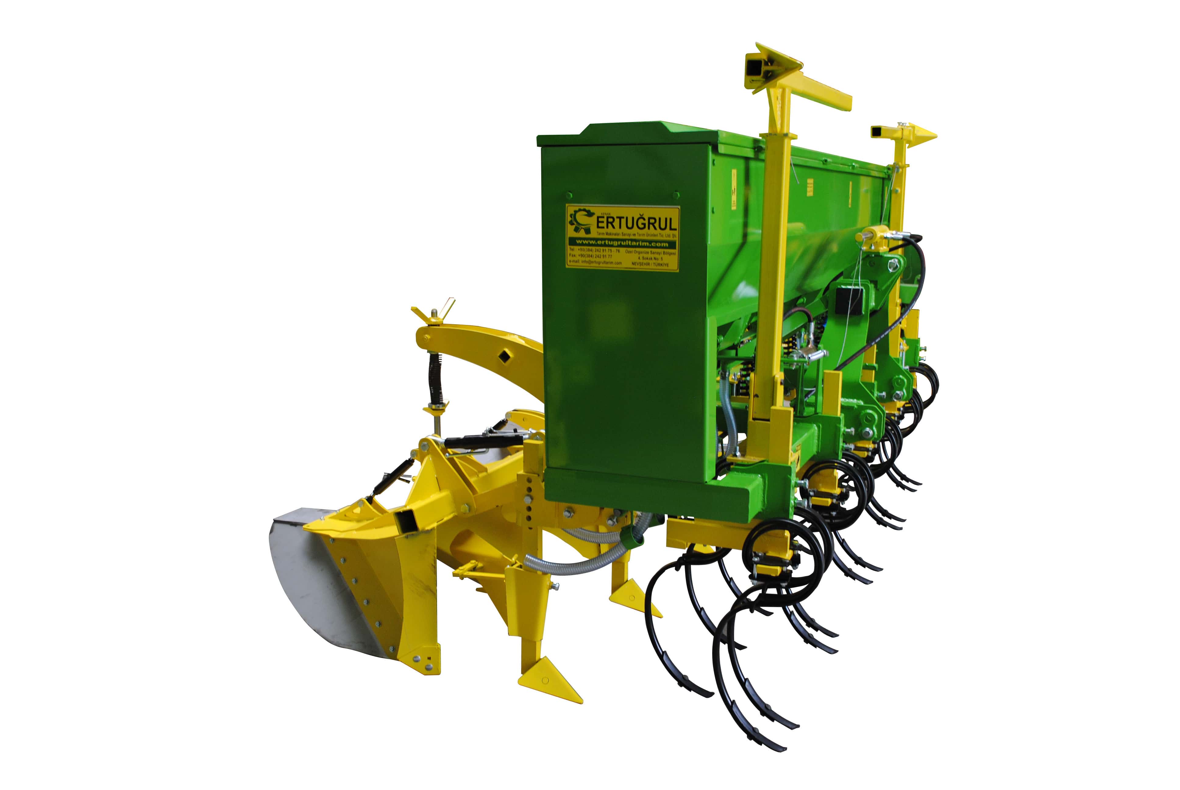 Our machine is used for row forming operations before planting in plowed soil and also performs clod-breaking during row formation. In addition to pre-planting row preparation, the machine can also be used for hoeing operations after planting. The front blade, middle winged blade, and rear row-forming feet are spring-loaded, providing ease of use and reliable performance in stony soil conditions.